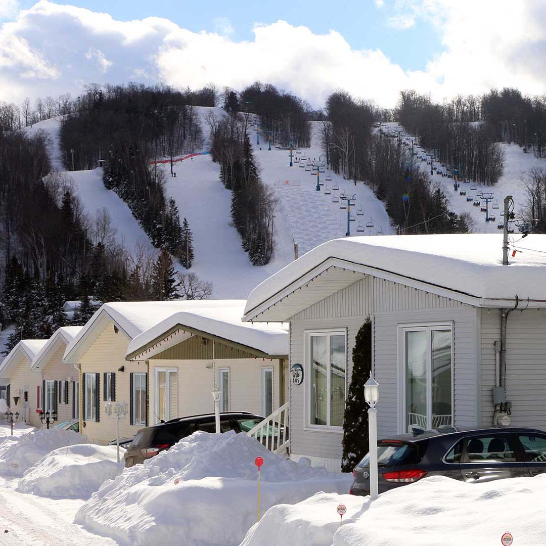 Les chalets à vendre sont situés à 45 minutes de Montréal. Sur le site de Habitations des Monts vous avez accès à la piscine extérieure et à 2 terrains de tennis.